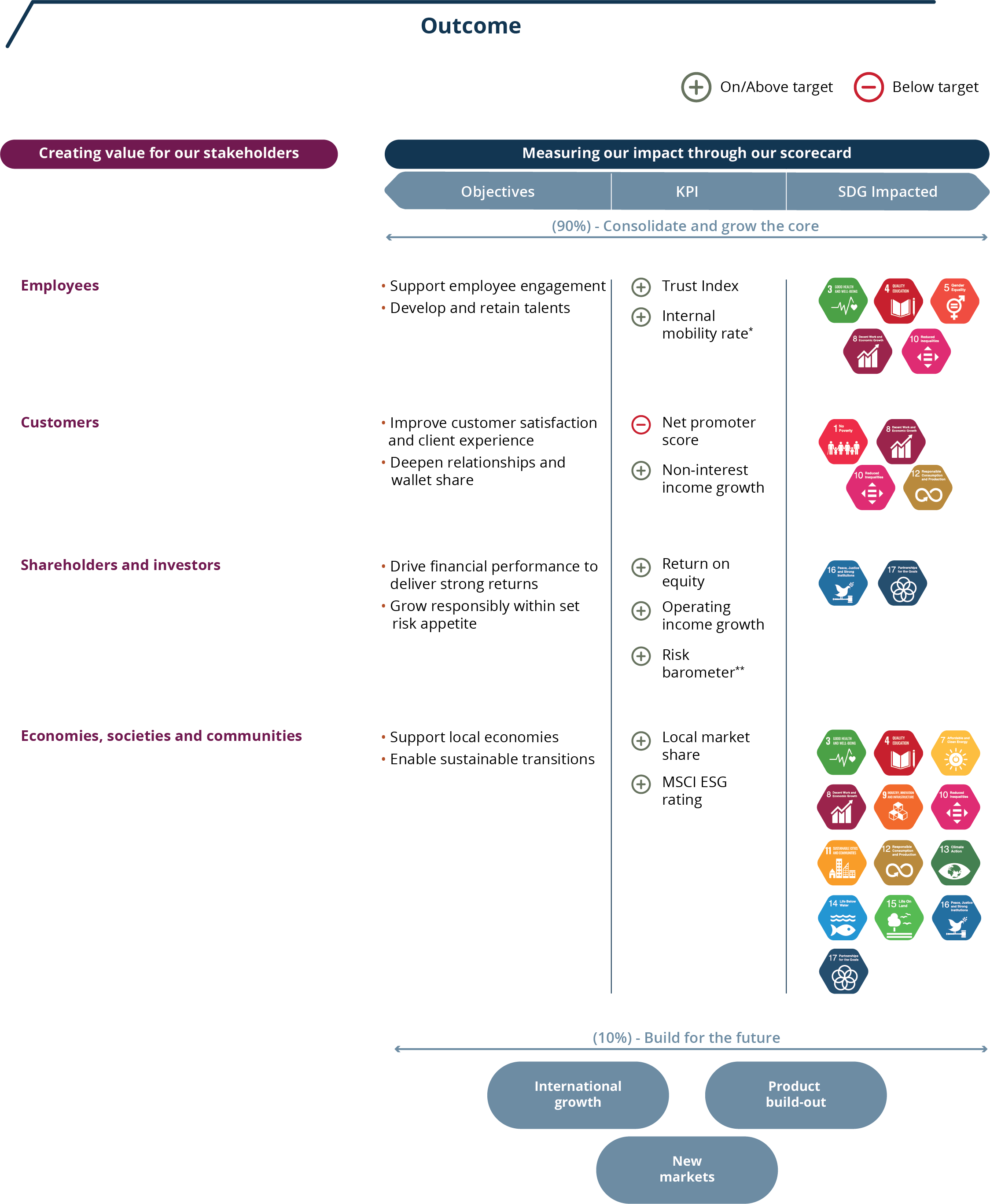 Guided by the ambition outlined in Vision 2030, we have defined our strategic priorities to shape our direction and actions over the next five years in a fast-changing world. These priorities are articulated around three pillars (i) leading in our home markets, namely Mauritius, Madagascar, Seychelles and Maldives by driving innovation, uplifting customer experience and supporting inclusive economic development; (ii) establishing ourselves as a top-tier Corporate and Investment Bank and Private Banking institution in Africa, contributing to the continent’s socio-economic progress through trade, investment and support for a just transition; and (iii) creating a winning workplace that empowers people and fosters innovation. In doing so, we seek to create lasting value for our stakeholders and contribute to a sustainable and inclusive future.